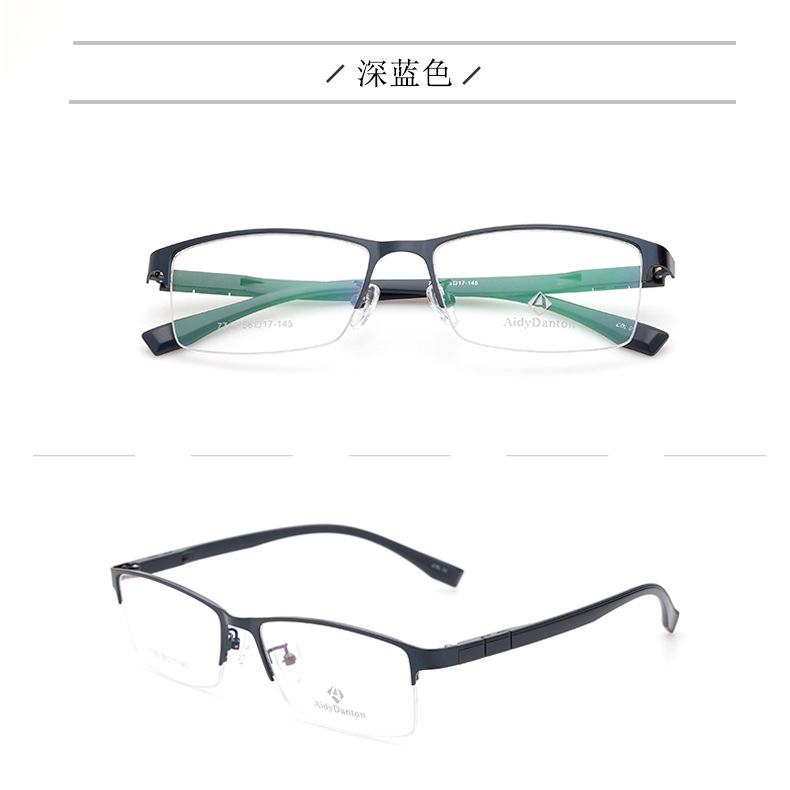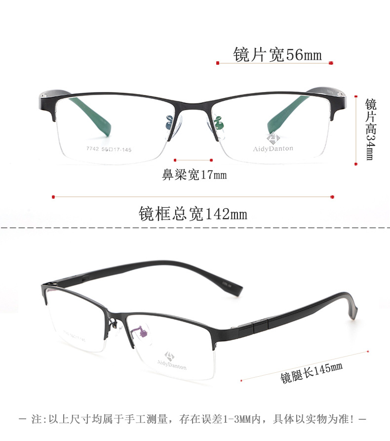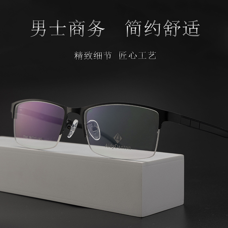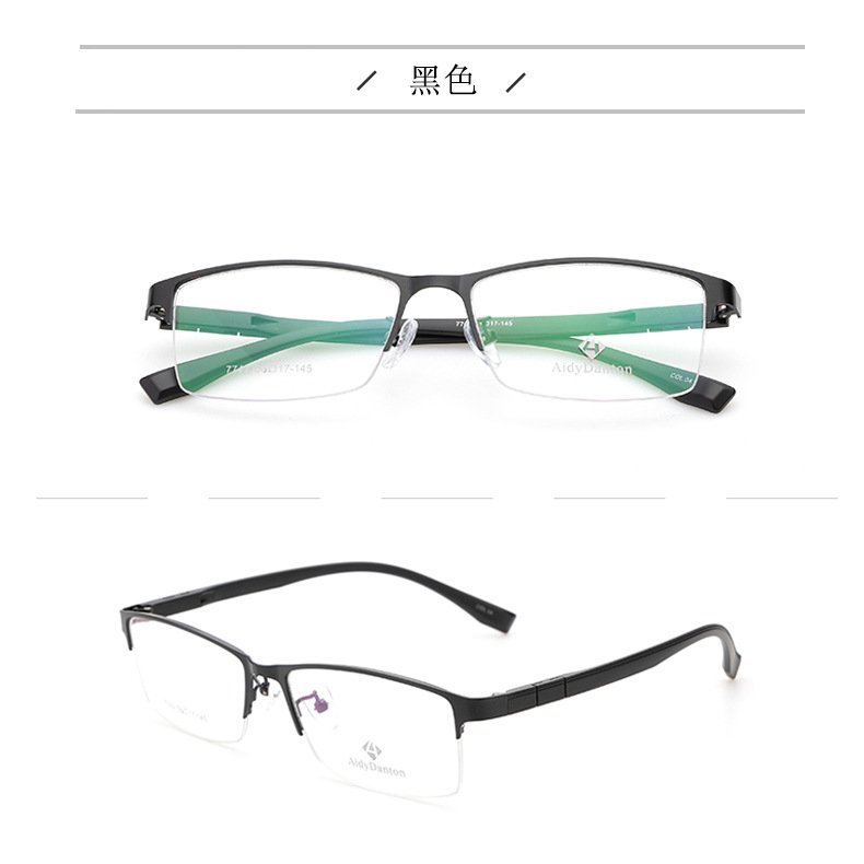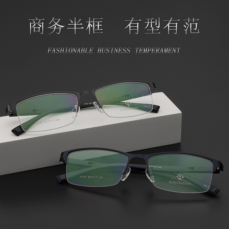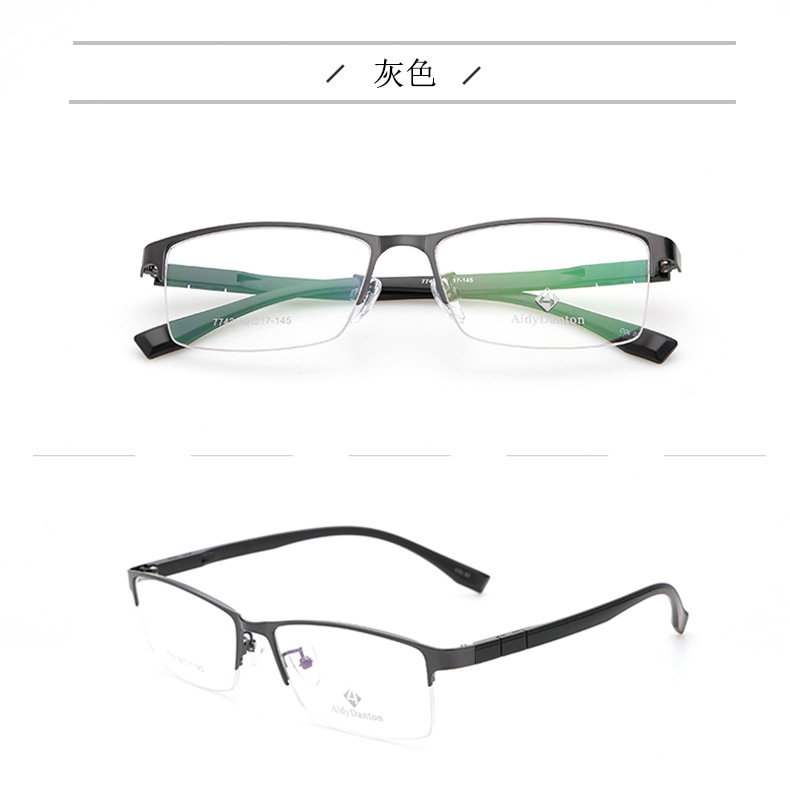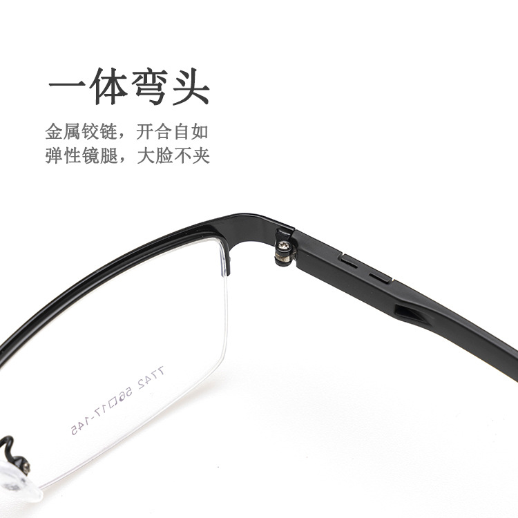 新款钢皮眼镜架厂家批发7742男士丹阳金属半框塑钢长城腿眼镜框