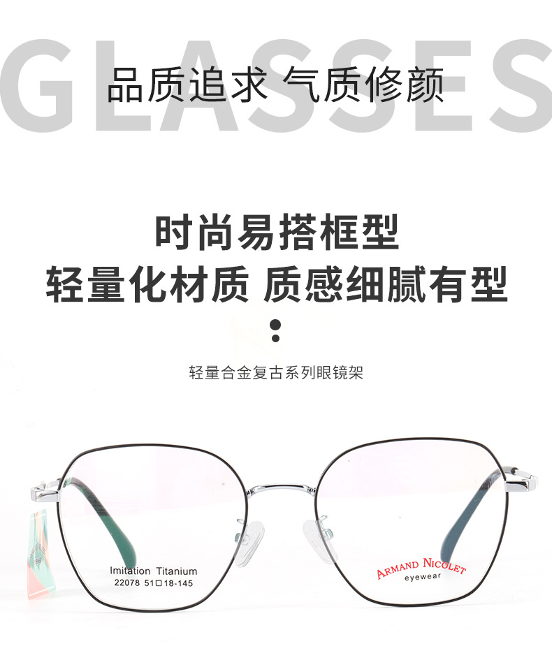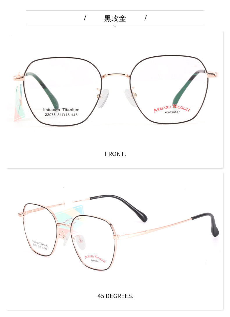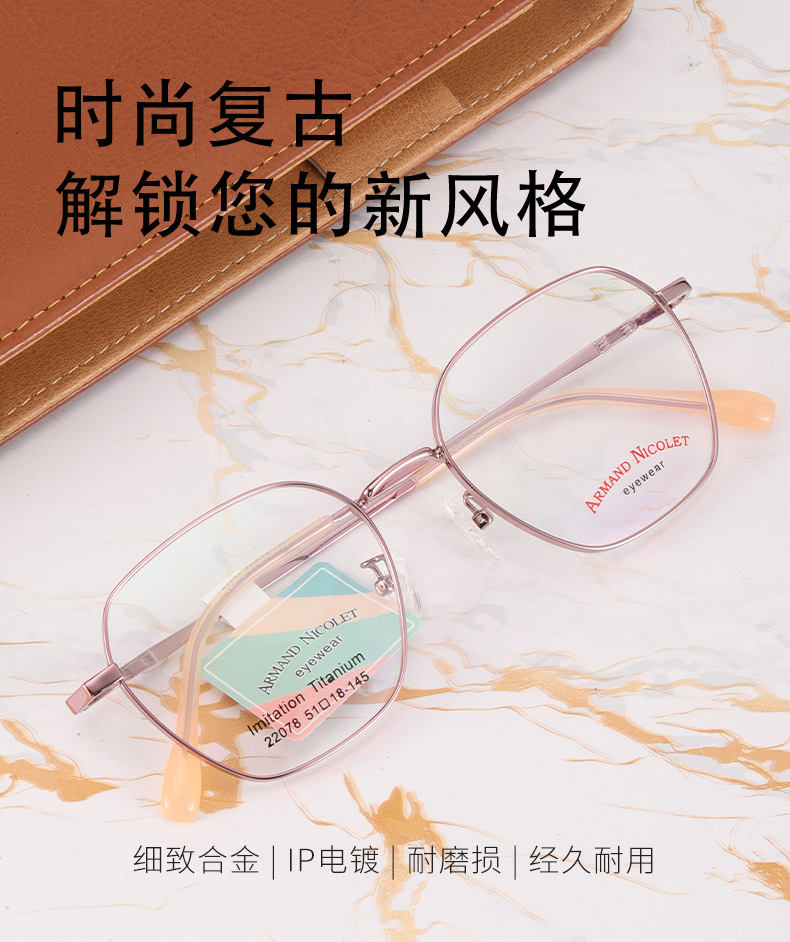 开球复古眼镜架22078抖音同款平光镜 深圳电镀时尚金属男女士镜框