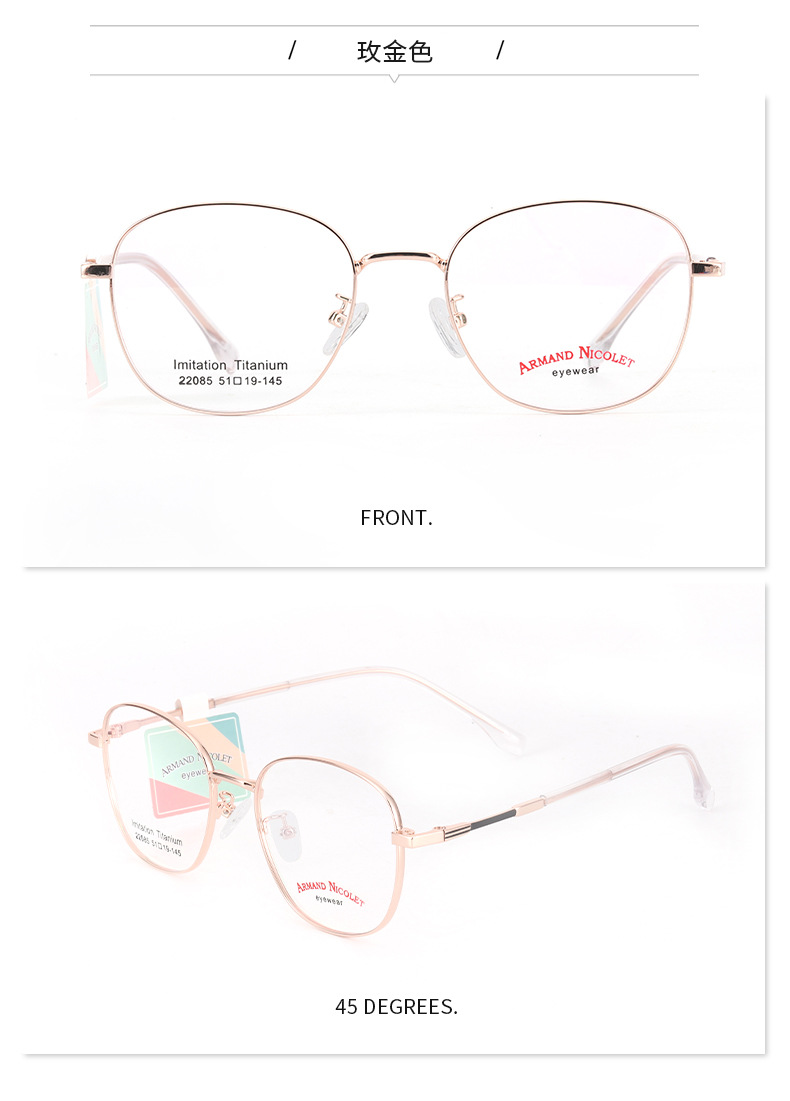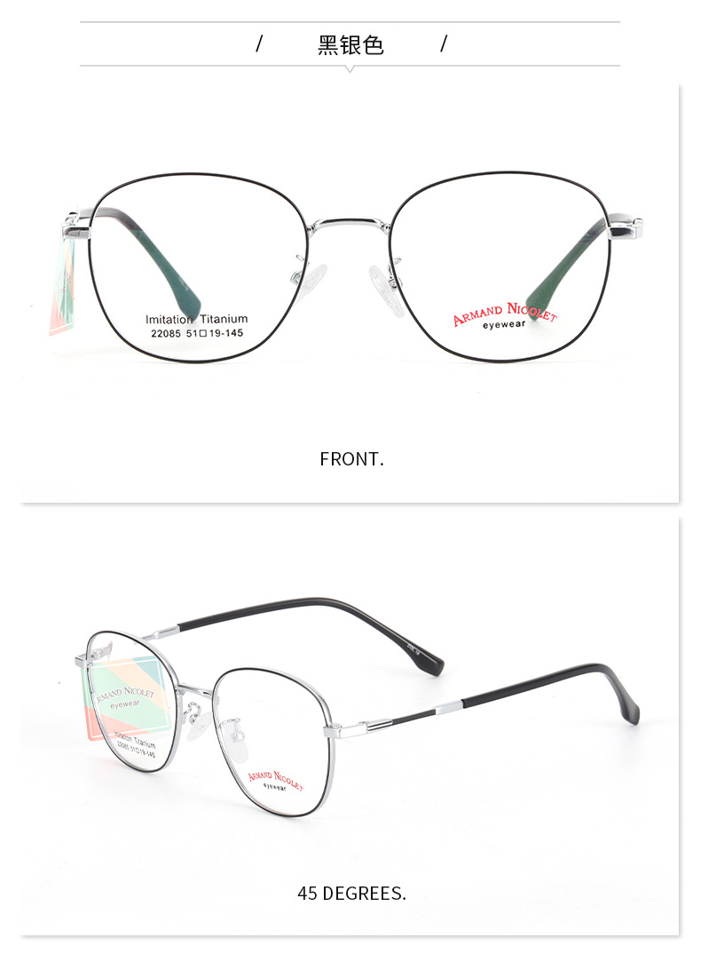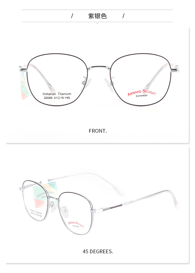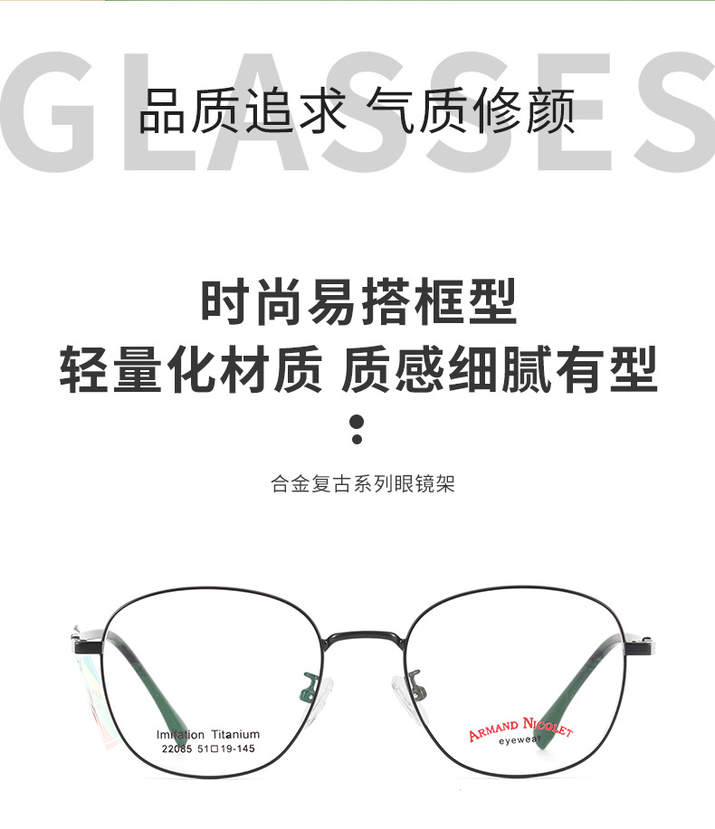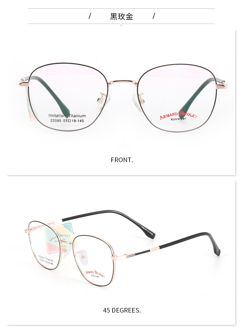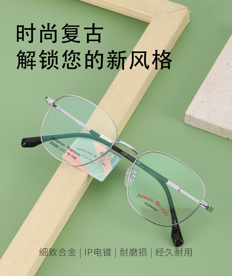 开球潮范复古眼镜框女 小红书同款镜架批发22085双色平光镜框男