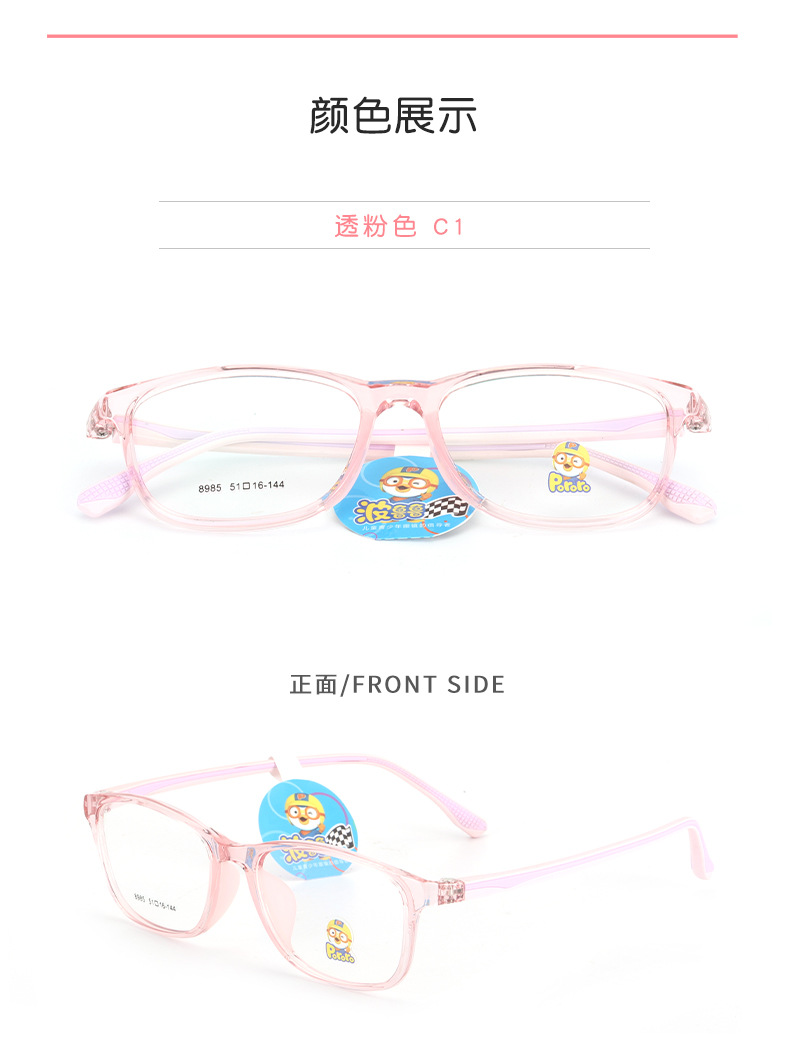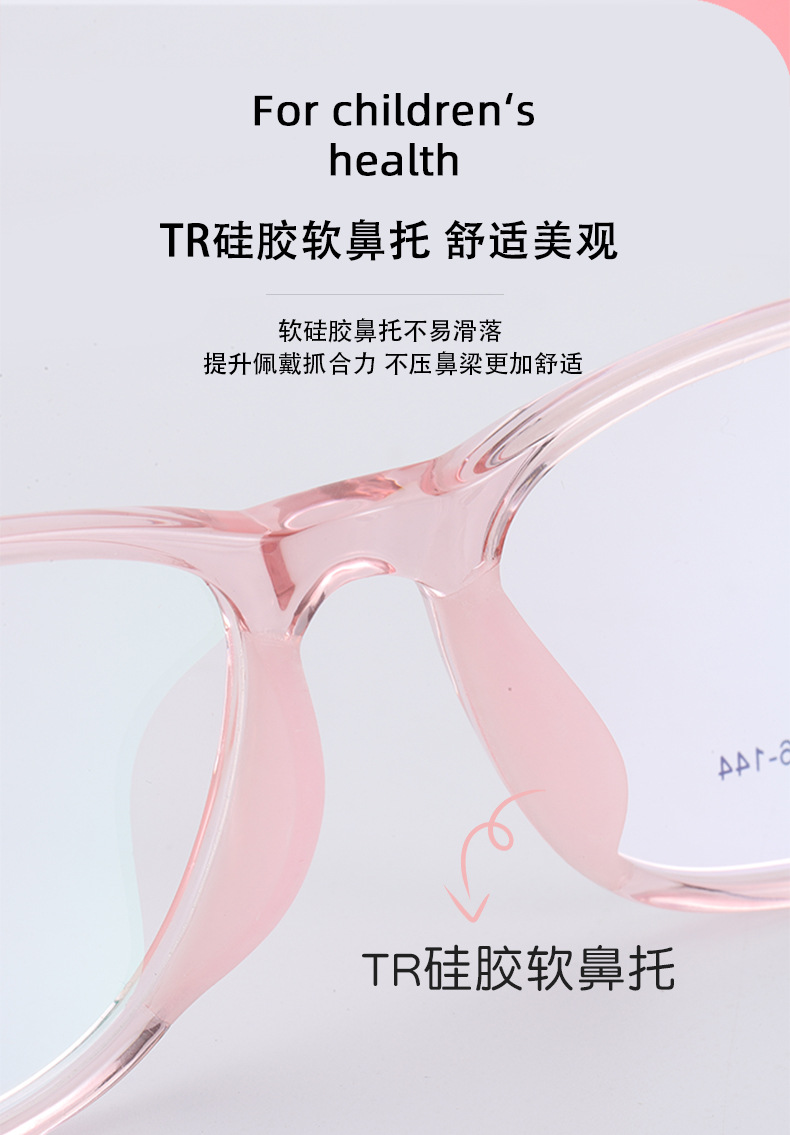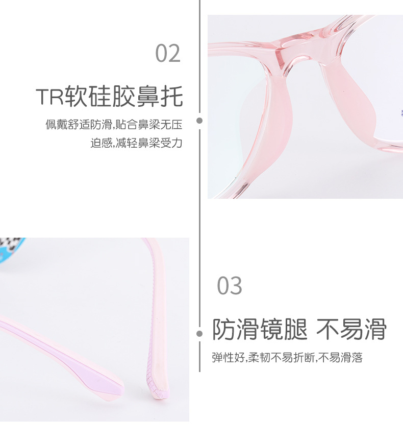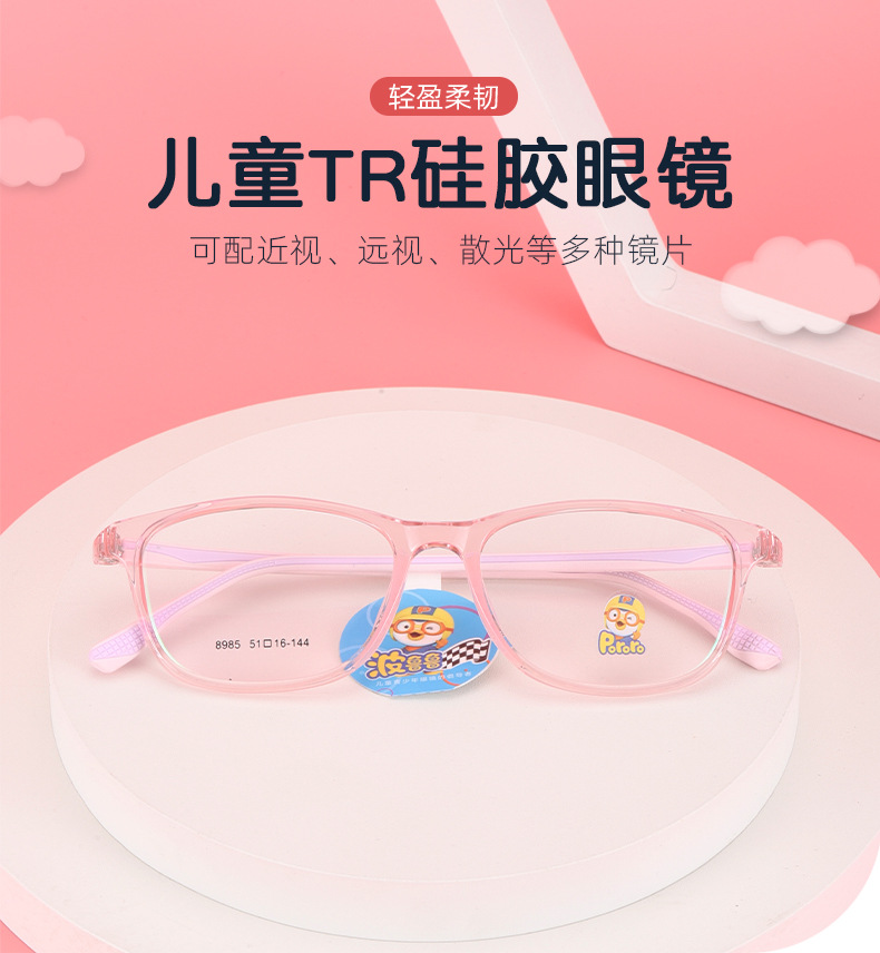 新款近视女硅胶鼻托防脱落TR90波鲁鲁男韩版透明色系儿童眼镜框架