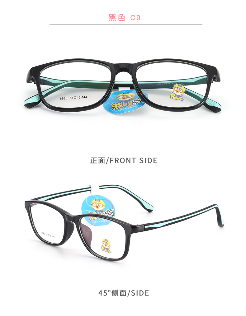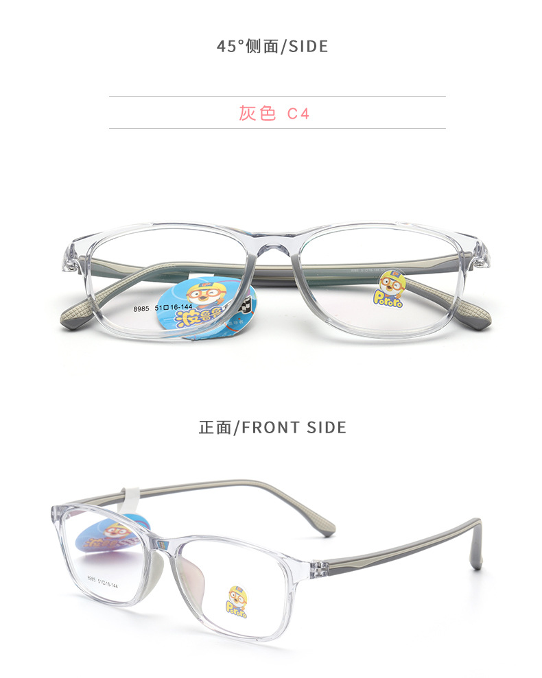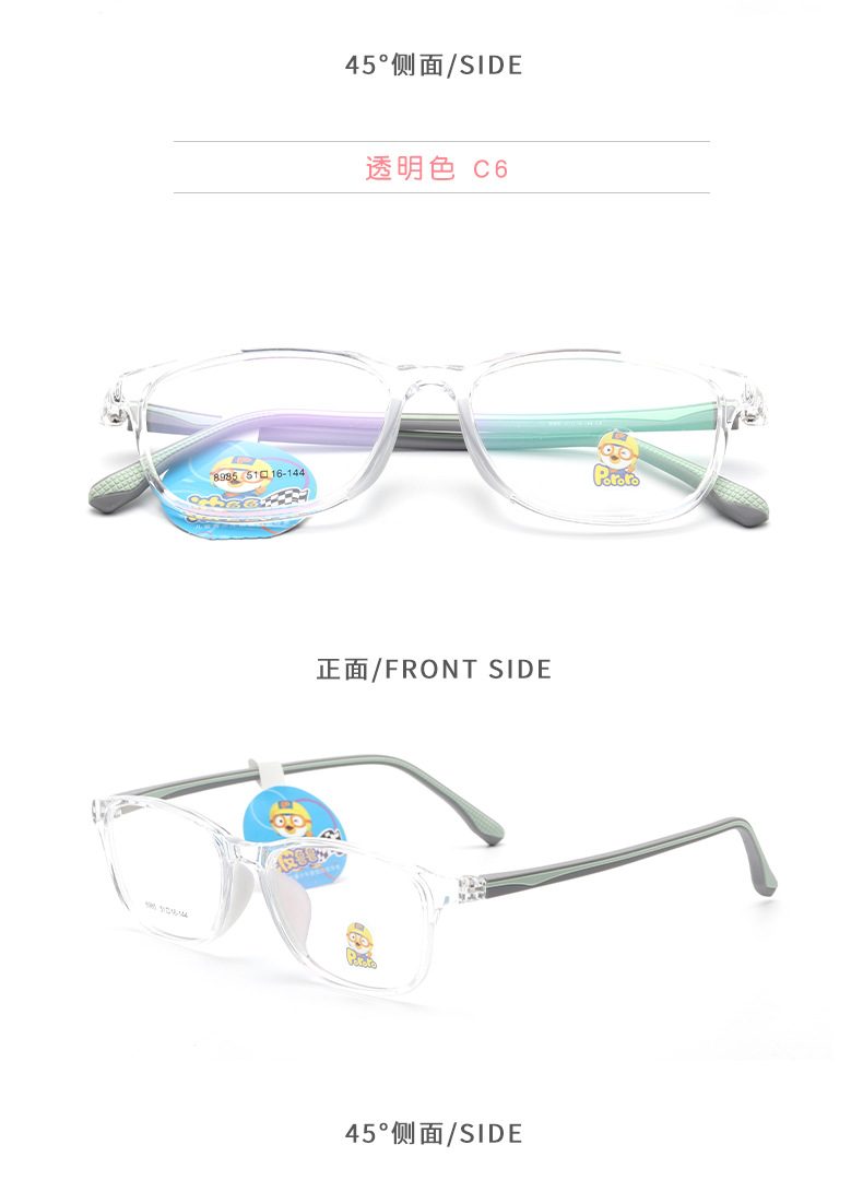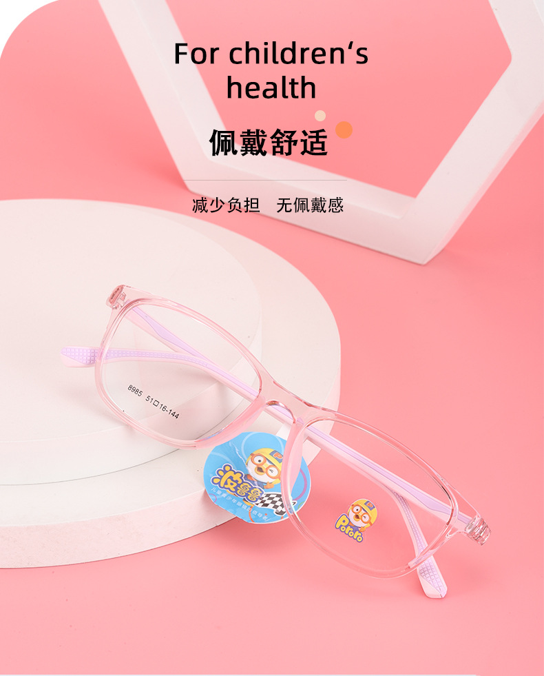 新款近视女硅胶鼻托防脱落TR90波鲁鲁男韩版透明色系儿童眼镜框架